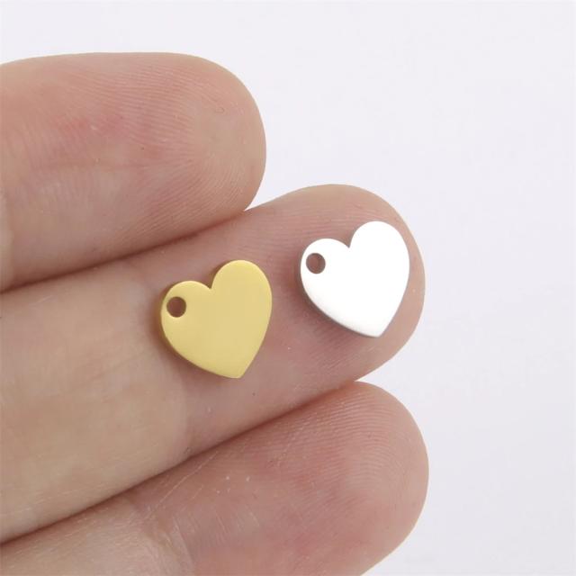 小さいフラットなハートのステンレス製のチャームパーツ。