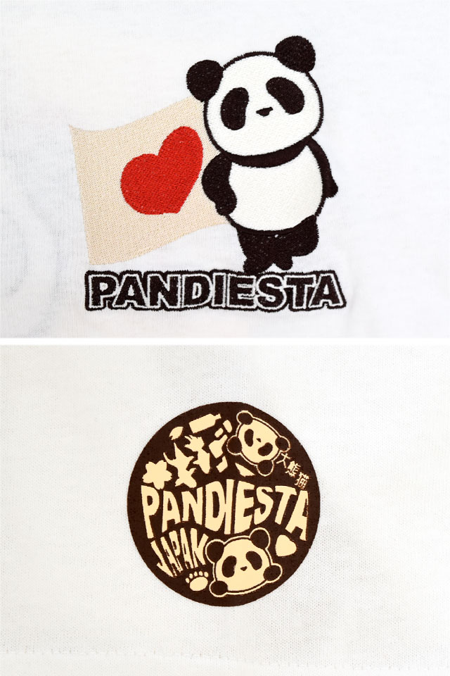 フロント左胸には、日の丸をハートにアレンジした国旗とパンディエスタをワンポイントで刺繍。