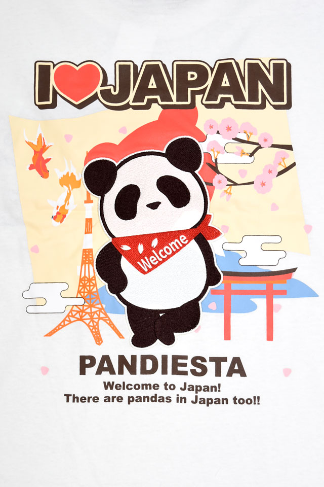 和柄ブランド【錦】の姉妹ブランドとして誕生した、お茶目なパンダをモチーフとした【PANDIESTA JAPAN】より「YOKOSO JAPAN 半袖Tシャツ(585567)」のご紹介です。 今や、錦の定番モチーフとなった「錦PANDA」!! 今回は「ようこそ日本へ!」とお客様を迎え入れているパンディエスタを背中にデザインしました。 「Welcome」と書かれたスカーフがとってもキュート。 背景には東京タワーや富士山、桜や金魚など、日本をイメージするような風景が描かれています。 フロント左胸には、日の丸をハートにアレンジした国旗とパンディエスタをワンポイントで刺繍。 袖にはワッペン風のモチーフをプリントしました。 夏のアイテムとして半袖Tシャツは何枚でも持っておきたいアイテムの一つ。 | |||||||||||||||||||||||||