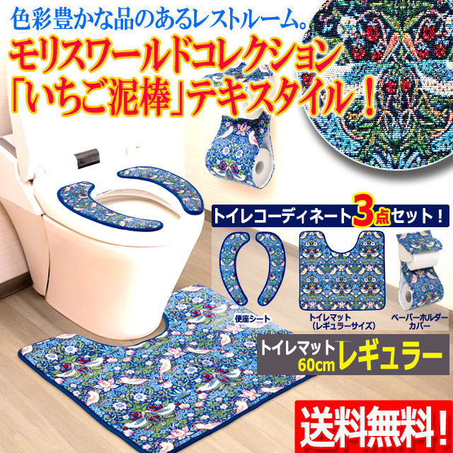 モリスワールドコレクション いちご泥棒 トイレコーディネート3点セット レギュラーサイズ トイレマット ペーパーホルダーカバー 便座シート 引っ越し