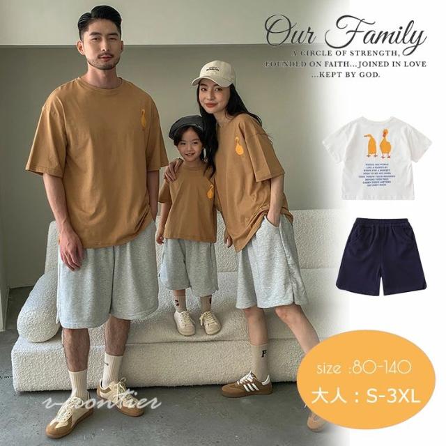 リンクコーデ 親子 セット 夏服 親子ペア tシャツ 半袖 綿 おもしろ アヒル 可愛い 親子 お揃い 父の日 トップス ショートパンツ ゆったり トップス パパ おしゃれ ins風 韓国風 子供服 パパ ママ 女の子 男の子 家族お揃い カップル 夫婦 恋人誕生日 プレゼント 80-140
