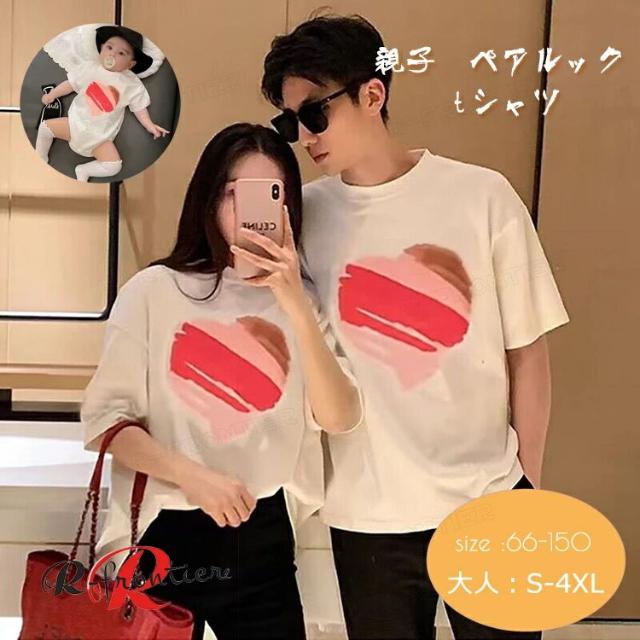 リンクコーデ 親子 セット 夏 親子ペア tシャツ ベビー ロンパース ハート柄 家族 お揃い tシャツ リンクコーデ 男女 おそろい 子供服 赤ちゃん パパ 親子ペアルック 半袖 トップス 親子お揃い 可愛い 女の子 男の子 ベビー服 夫婦 恋人 記念撮影 誕生日 父の日 プレゼント