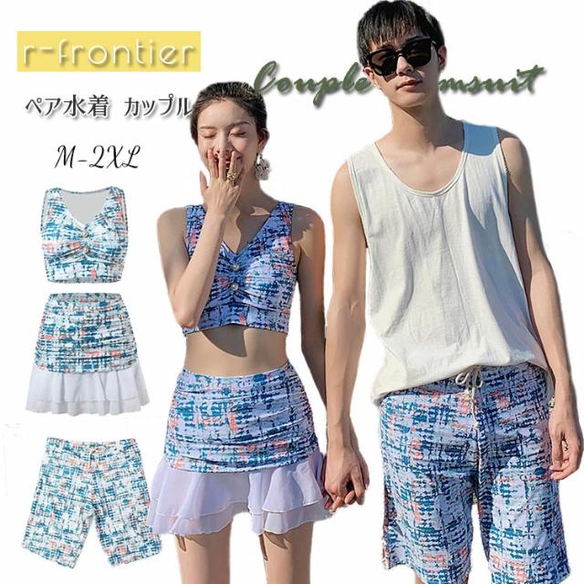 ペア カップル 水着 セパレート 水着 ビキニ ハーフパンツ 体型カバー レディース メンズ カップル 水着 カップル 透け感 日焼け対策 露出控えめ メンズ水着 男性用 ビーチパンツ セクシー 盛れる ミズギ 男女 夫婦お揃い 温泉 ハネムーン 蜜月 海外旅行 新婚旅行