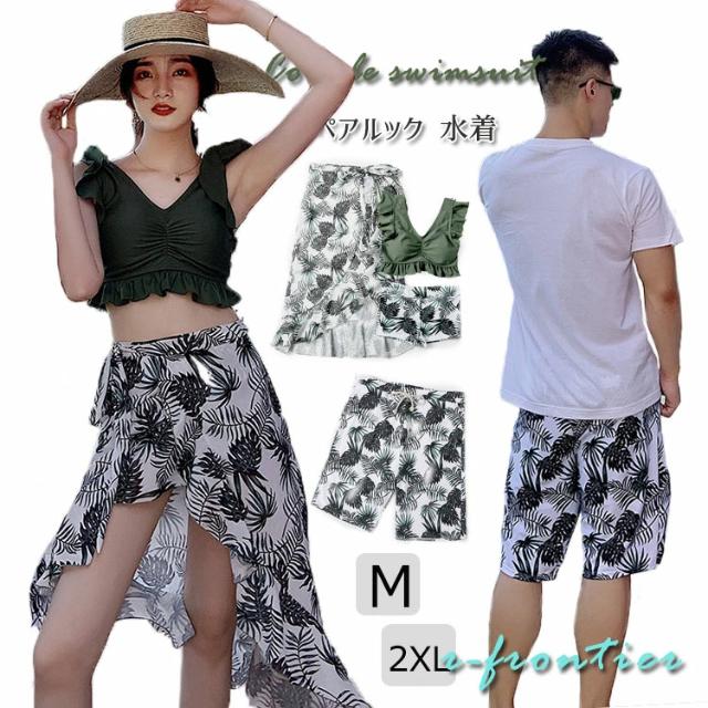 カップル 水着 パレオ付き セパレート 3点セット レディース メンズ ペアお揃い 体型カバー 露出控えめ ショートパンツ メンズ水着 男性用 ビーチパンツ ハーフパンツ 盛れる ラッシュガード ミズギ 男女 ペアルック 夫婦お揃い 温泉 ハネムーン 海外旅行 新婚旅行 夏