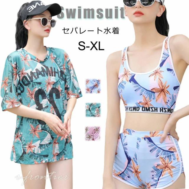 水着 高校生 体型カバー セパレート フィットネス 水着 ラッシュガード ビキニ レディース 水着 ショートパンツ レギンス 胸パッド付き 露出控えめ 柄 ママ水着 半袖 快適 可愛い uvカット 女性 バスト 盛れる 着痩せ ミセス ママ水着 20代 30代 40代