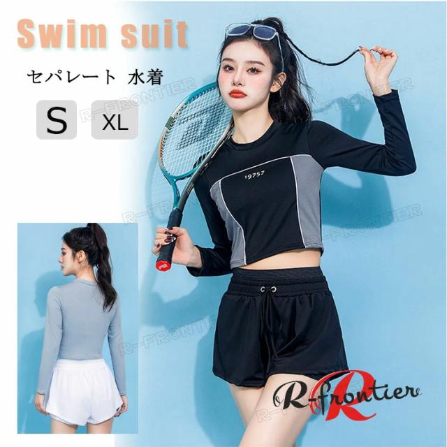 水着 レディース フィットネス水着 長袖 セパレート 水着 胸パッド付き アンダーパンツ 体型カバー 高校生 スポーツ水着 露出控えめ 20代 30代 40代 快適 可愛い uvカット 女性 バスト 盛れる 着痩せ ミセス ママ水着 二の腕 お尻 お腹 太もも カバーアップ