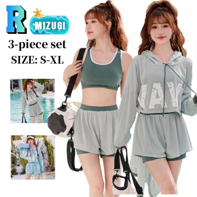 水着 高校生 レディース セパレート フィットネス 水着 体型カバー 露出控えめ 長袖 ラッシュガード Tシャツ タンキニ水着 ビキニ ショートパンツ 上下セット 3点セット ブルー グリーン ウエスト ヒップ 太もも カバーアップ ぽっちゃり レディース