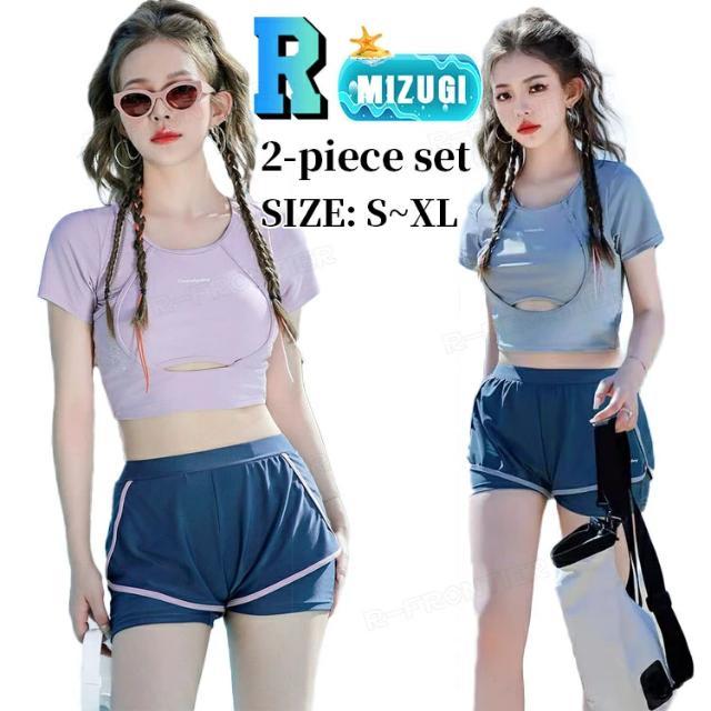 水着 高校生 フィットネス水着 セパレート 水着 レディース 半袖 胸パッド付き アンダーパンツ 体型カバー スクール スポーツ水着 露出控えめ 20代 30代 40代 快適 可愛い uvカット 女性 バスト 盛れる 着痩せ ミセス ママ水着 二の腕 お尻 お腹 太もも カバーアップ