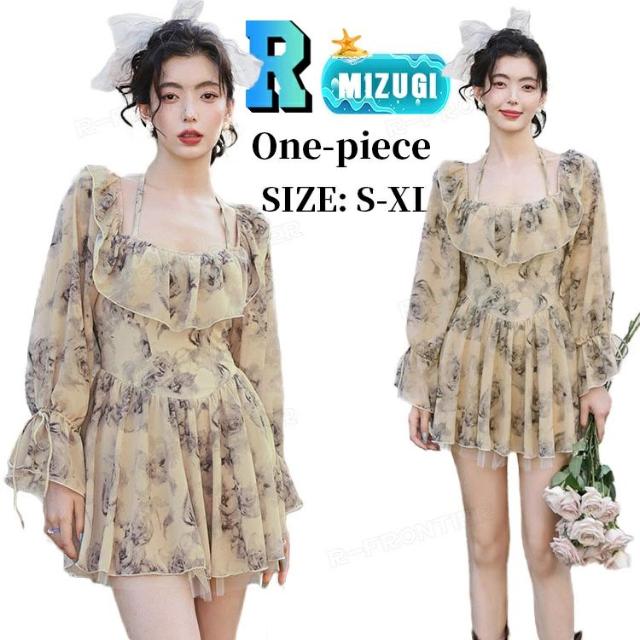 水着 レディース 長袖 ワンピース 水着 韓国 花柄 オールインワン スクエアネック 胸パッド付き 体型カバー 露出控えめ 総柄 日除け 高校生 ママ水着 20代 30代 40代 快適 可愛い uvカット ショートパンツ 女性 バスト 盛れる 脚 二の腕 カバーアップ