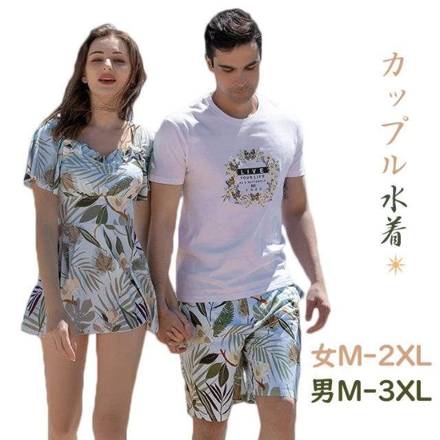 カップル 水着 お揃い水着 ペアルック カップル ペア 水着 体型カバー レディース 花柄2点セット水着 ワンピース ハーフパンツ メンズ パンツ メンズ水着 男性 ビーチパンツ サーフパンツ セクシー 男女 温泉 ハネムーン 蜜月 海外旅行 新婚 夏 カップルセット