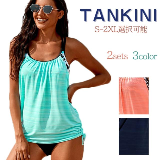 タンキニ ママ水着 2点セット 水着 体型カバー 50代 レディース 60 代 タンキニ レディース セパレート 胸パッド付き 高校生 水着 ジュニア アンダーパンツ 露出控えめ スポーティ ママ水着 3XL 大人 日焼け止め みずぎ 快適 温泉 カバーアップ ショートパンツ 女性 バスト