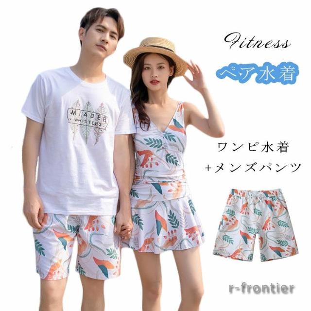 カップル ペア水着 レディース 体型カバー ワンピース水着 可愛い ショートパンツ 露出控えめ メンズ水着 男性用 ビーチパンツ ハーフパンツ セクシー 盛れる ミズギ 男女 夫婦お揃い 温泉 ハネムーン 蜜月 海外旅行 新婚旅行 夏