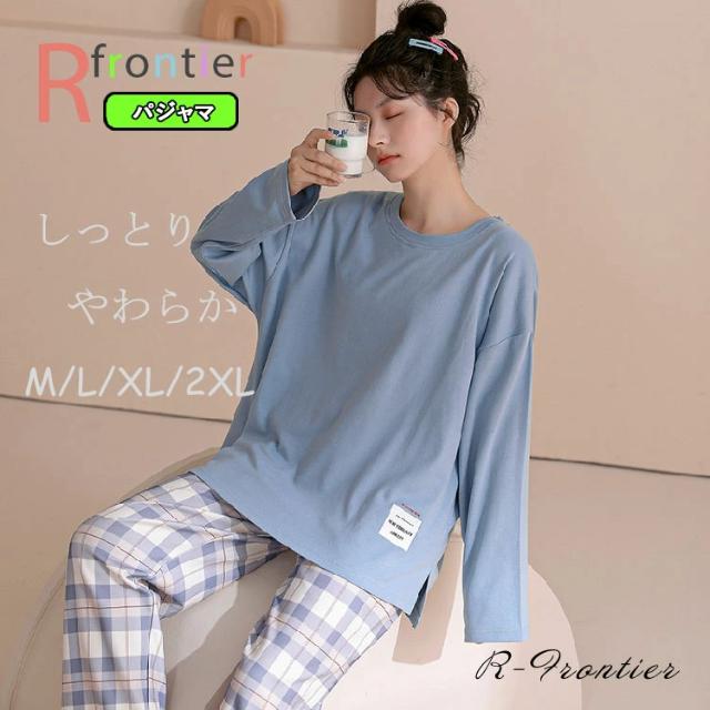 パジャマ レディース 秋冬 長袖 可愛い 長ズボン 綿 ルームウェア レディース 春 チェック柄 部屋着 パジャマ 上下セット 安い セットアップ レディース 2点セット ゆったり パジャマ ロングパンツ ルームウェア 女性 可愛い 部屋着 寝巻き 韓国風 ゆったり