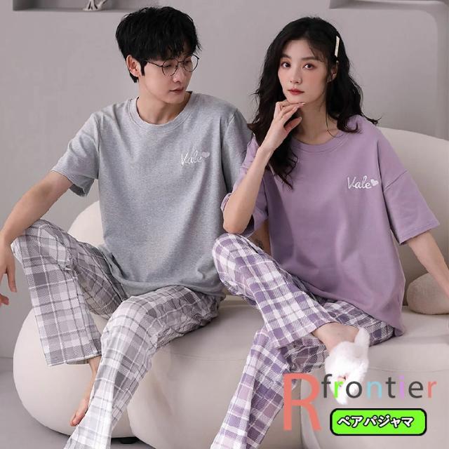 ペアパジャマ 半袖 長ズボン 夏 ルームウェア チェック柄 秋 カップル 上下セット ルームウェア 春 ペアルック ペアパジャマ 安い カップル ペア お揃い 結婚祝い プレゼント ペアパジャマ レディース メンズ 部屋着 パジャマ 夫婦 記念日 おしゃれ 寝巻き 韓国風 ゆったり