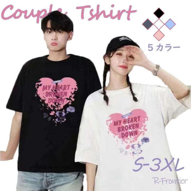 カップルtシャツ ペアtシャツ 夏 カップル リンクコーデ ペアルック tシャツ ハート 英語字 夏服 白 黒 半袖 ペア 夫婦 大きいサイズ 可愛い おしゃれ メンズ レディース トップス オーバー サイズ ゆったり カップル お揃い服 オシャレ 記念日 プレゼント 夏