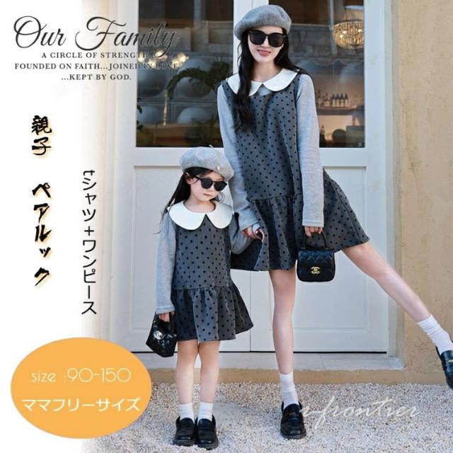 親子ペア ワンピース 長袖 tシャツ 水玉柄 リンクコーデ 親子 セット 秋 可愛い 親子ペアルック 親子お揃い 親子コーデ ワンピース ドット 女の子 ママ 娘 母娘コーデ おしゃれ 洋服 普段着 記念日 家族活動 旅行 誕生日 プレゼント 90-150