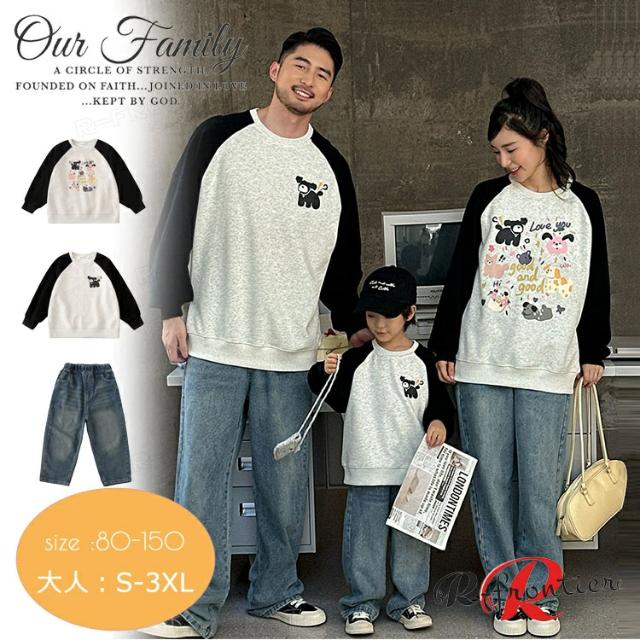 リンクコーデ 親子 セット 長袖 親子ペア トレーナー 春 可愛い 動物柄 親子 ペアルック パーカー 長袖 トップス tシャツ デニムパンツ ゆったり 親子コーデ 親子 家族お揃い 秋物 おしゃれ 韓国風 子供服 女の子 男の子 パパ ママ カップル 夫婦 恋人 誕生日 プレゼント