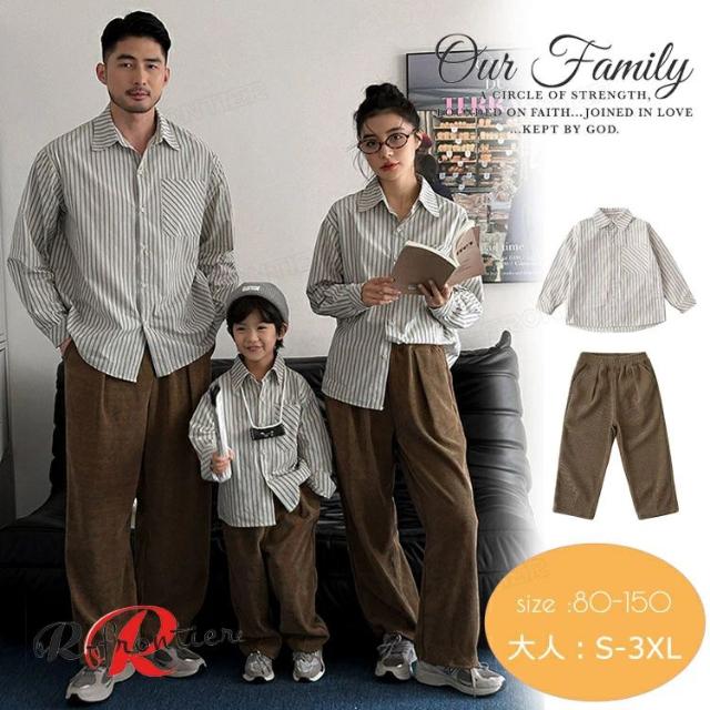リンクコーデ 親子 セット 長袖 ストレートパンツ 親子 ペアルック トップス 縞柄 シャツ ロングパンツ 親子 おそろい ゆったり 秋物 おしゃれ 韓国風 子供服 女の子 男の子 パパ ママ 家族お揃い カップル 夫婦 恋人 誕生日 記念撮影 父の日 母の日 プレゼント 80-150