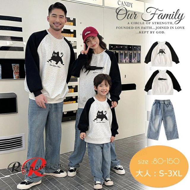 親子ペア トレーナー 猫ちゃん 春秋 リンクコーデ 親子 セット 長袖 親子 ペアルック tシャツ パーカー デニムパンツ 可愛い 動物柄 ゆったり 親子 おそろい 秋物 おしゃれ 韓国風 子供服 女の子 男の子 パパ ママ 家族お揃い カップル 夫婦 恋人 誕生日 プレゼント 80-150