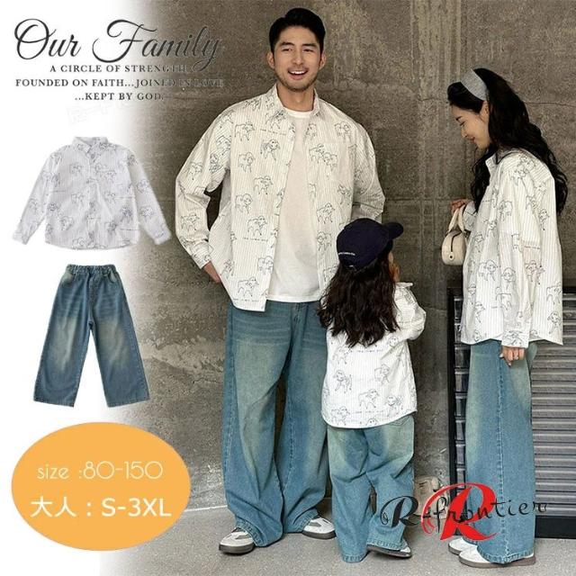 リンクコーデ 親子 セット 長袖 デニムパンツ 親子ペアルック トップス 長袖 縞柄 ヒツジ シャツ ストレート パンツ ゆったり 親子 おそろい おしゃれ 韓国風 子供服 女の子 男の子 パパ ママ 家族お揃い カップル 夫婦 恋人 誕生日 記念撮影 父の日 プレゼント 80-150