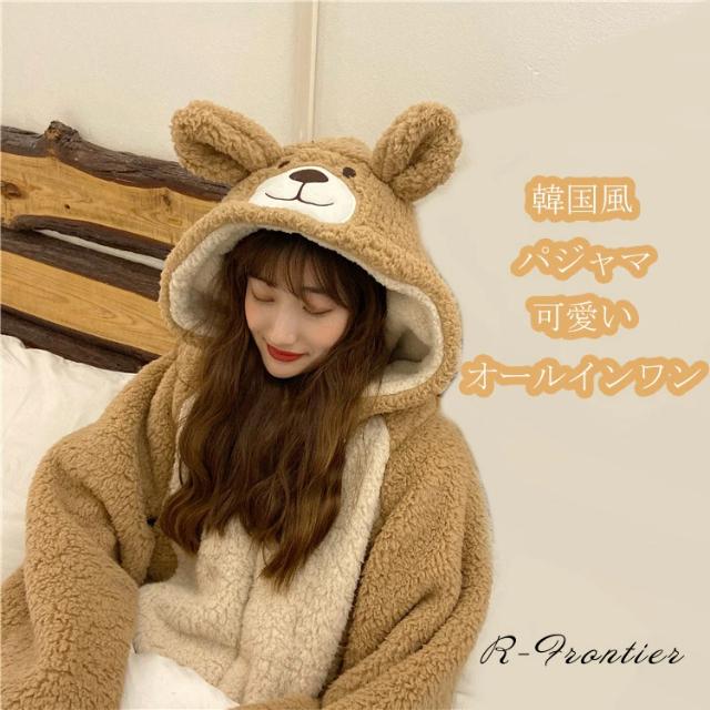 着ぐるみ パジャマ 大人用 レディース もこもこ ルームウェア クマ耳 着る毛布 動物 可愛い 冬物 女子 オールインワン 修学旅行 中学生 高校生 韓国 着ぐるみ風 寝巻き 前開き フード付き 防寒 暖かい お祭り イベント 学園祭 部屋着 秋 クリスマスプレゼント