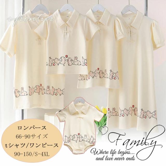 リンクコーデ 親子 セット 中国風 親子ペア tシャツ ワンピース 赤ちゃん ロンパース 可愛い ウサギ ペアtシャツ 家族お揃い 親子コーデ 夏服 tシャツ 赤ちゃん パパ ママ 子供 女の子 男の子 母 息子 カップルペア 生産お祝い 記念日 家族活動 記念撮影 旅行 プレゼント