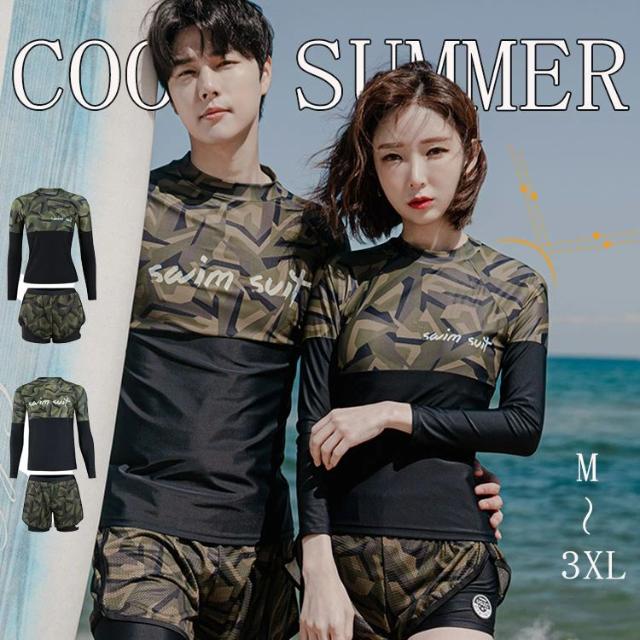 カップル 水着 レディース 体型カバー カップル 水着 大人 水着 日焼け止め セパレート 潜水服 オフショルダー スカート 2点セット 20代 30代 40代 セットアップ 大人 かわいい セクシー フリル 二の腕 お尻 カバーアップ バスト 盛れる おしゃれ 露出控えめ 迷彩
