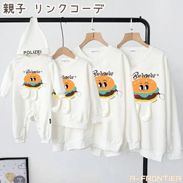 親子コーデ トレーナー リンクコーデ 親子 セット ハンバーグ パーカー おもしろ 長袖 ベージュ パパ ママ ベビー ロンパース 赤ちゃん 親子 おそろい こども服 長袖 秋冬 可愛い ペアルック レディース 母 息子 子供 キッズ 女の子 男の子 家族お揃い 写真撮影 プレゼント