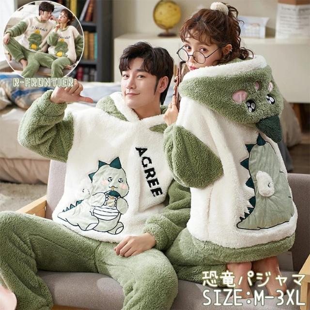 恐竜 パジャマ 上下セット 着ぐるみ カップル ペア パジャマ 大人用 冬 もこもこ ルームウェア グリーン 可愛い もこもこ 動物 怪獣 ペアパジャマ モコモコパジャマ レディース ペアパジャマ ナイトウェア 秋冬 夫婦 部屋着 フリース 誕生日 プレゼント