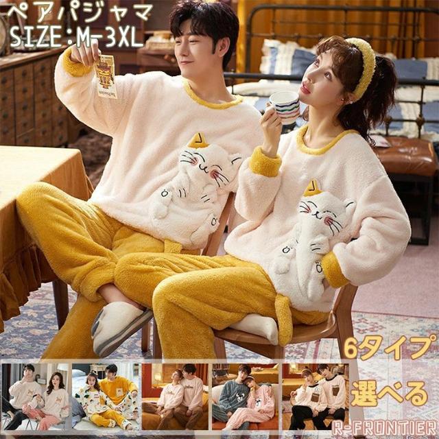 ペア パジャマ 冬 もこもこ 着ぐるみ ネコ パジャマ 大人用 ルームウェア フリース ナイトウェア 可愛い イエロー カップル ペア 暖かい モコモコパジャマ レディース ペアパジャマ メンズ カップル 秋冬 無地 夫婦 結婚祝い 部屋着 寝間着 ペア カップル ナイトウェア