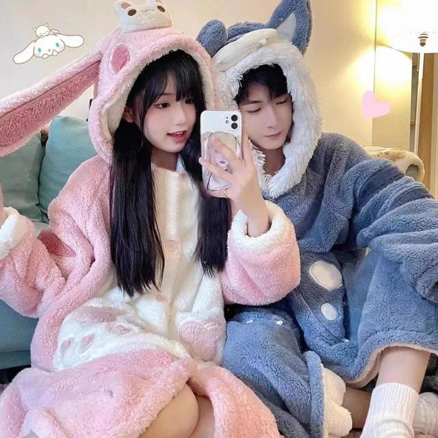 可愛い カップル ペア パジャマ うさぎ お揃い もこもこ パジャマ 冬 ルームウェア ウサギ耳 着ぐるみ 動物 おおかみ ペアパジャマ フード付き モコモコパジャマ レディース ペアパジャマ ナイトガウン 秋冬 修学旅行 中学生 カップル ペア 誕生日 プレゼント 部屋着