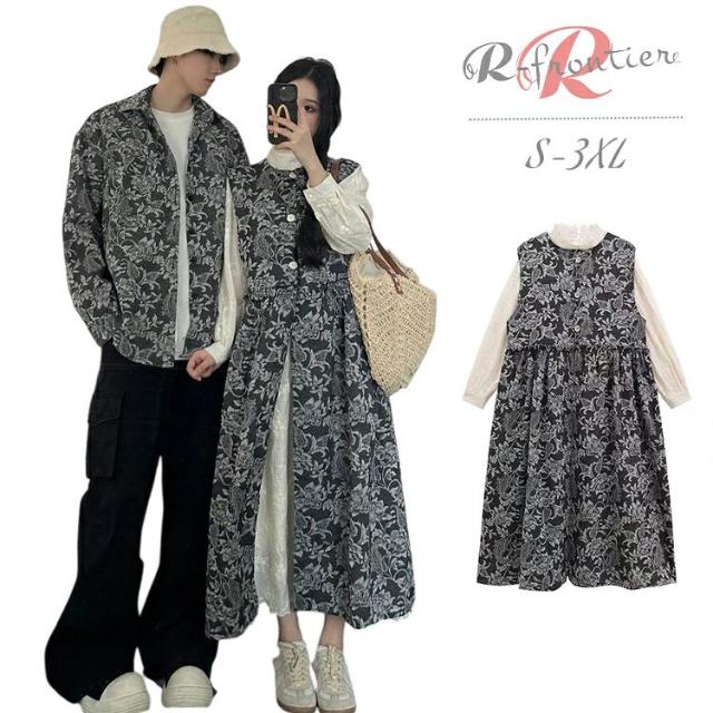 ペアお揃い 花柄 シャツ 重ね着 ジャンパースカート 白 花柄 ワンピース 韓国風 ペアルック カップル ペアシャツ リンクコーデ カップル ワンピースセット 海遊び 春 夏 ビーチウエア ゆったりシャツ ハワイ 男 夫婦お揃い カップルペア 海リゾート 沖縄 旅行 記念日 夏休み