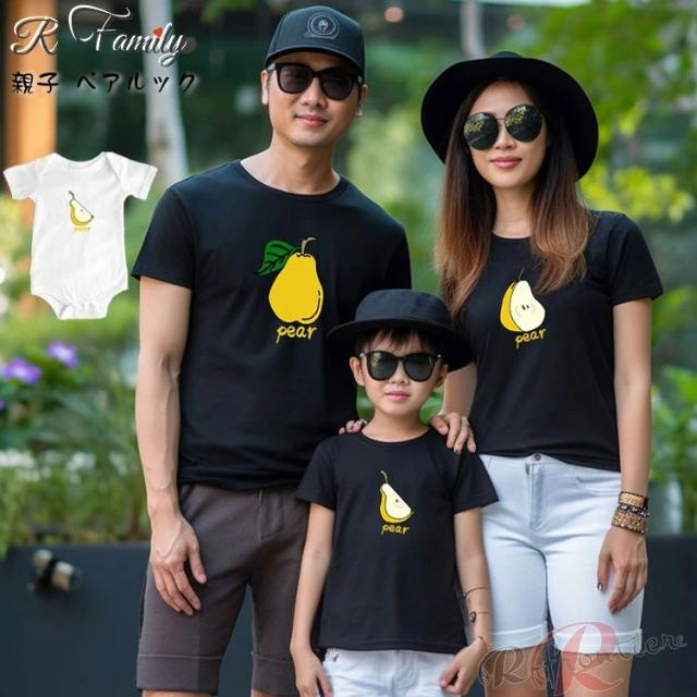 リンクコーデ 親子 セット 親子 ペアtシャツ おもしろ 果物 梨 赤ちゃん ロンパース 親子 ペアルック ロンパース 夏 ベビー 大きいサイズ パパ 梨子 かわいい 親子コーデ tシャツ 家族 お揃い tシャツ 子供服 親子ペアルック 誕生日 母の日 父の日
