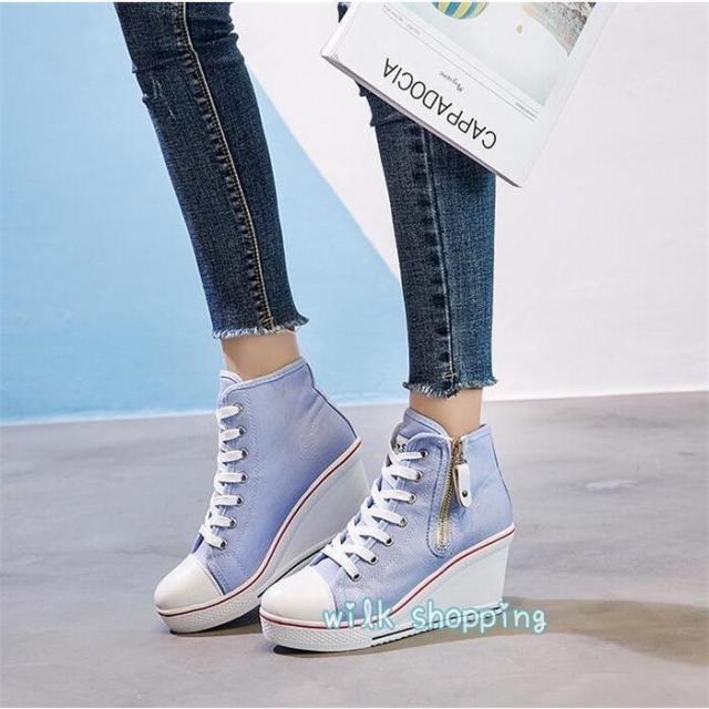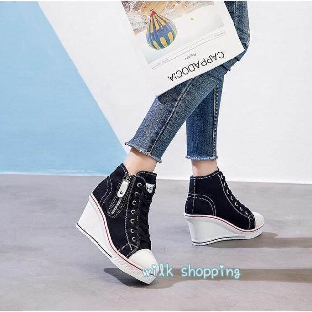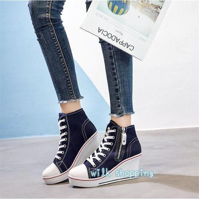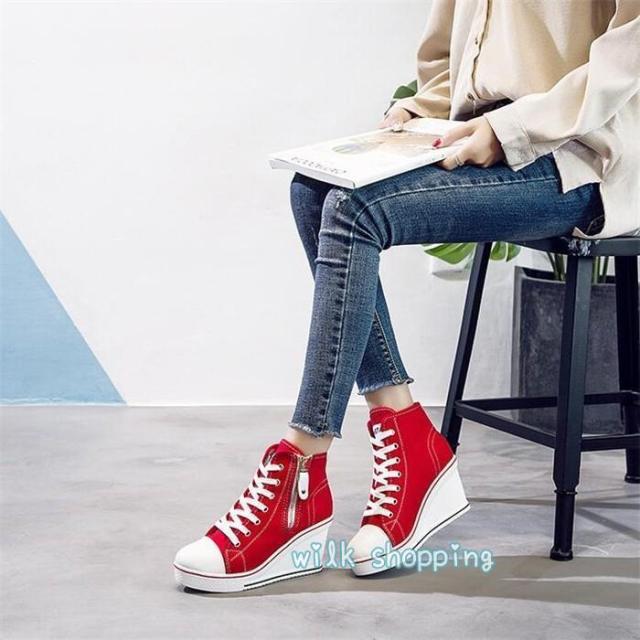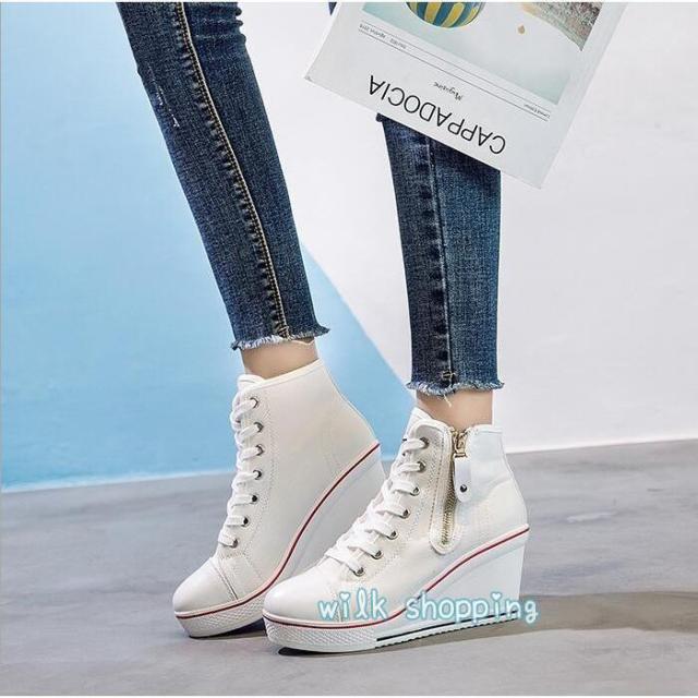 スニーカー ローカット 8cm ウェッジソール カジュアルシューズ 厚底スニーカー ハイカット インヒール 厚底 レースアップ 編み上げ