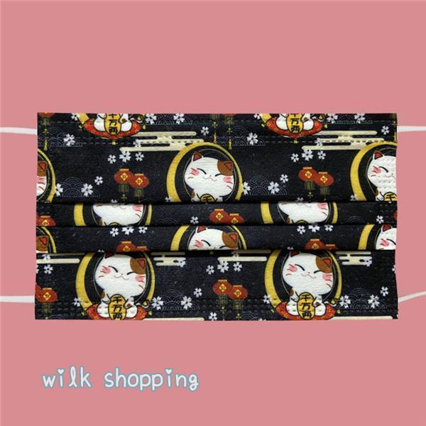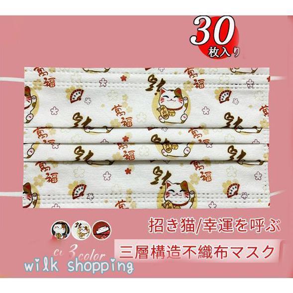 不織布マスク 招き猫 30枚セット 使い捨て 柄入り 柄物 猫 ファッション 大人 おしゃれ かわいい 幸運を呼ぶ 猫グッズ 猫雑貨