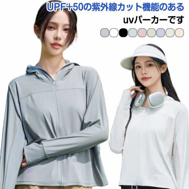 uvカット パーカー レディース 指穴 大きいサイズ uvカットパーカー 遮光 長袖 無地 フード付き 春 アウトドア ラッシュガード uvカット 涼しい 日焼け対策 uvパーカー uv 薄手 冷感 ひんやり ジップアップ