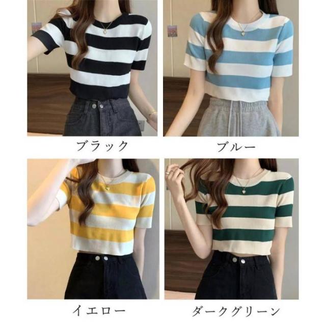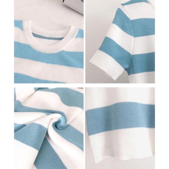サマーニット ボーダー柄 半袖ニットソー