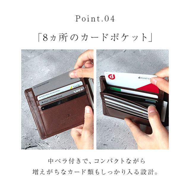 | 商品説明 | 【国産天然皮革で上質な仕上がり】 ・日本を代表する国産革、栃木レザーを使用!「栃木レザージーンズ 二つ折り財布」。 【味わいの増すこだわりの栃木レザー】 ・少しツヤのあるフルベジタブルタンニングレザー。経年変化を楽しめて長く愛用できるアイテム。 【コンパクトに見えて頼れる収納力】 ・スマートに持ち歩ける二つ折り財布。収納スペースが多く、見た目以上の収納力が自慢! 【仕分けしやすい2つのお札入れ】 ・2スペース仕様で、お札やレシートを分けて収納可能。タッチ決済に便利な隠しポケット付き。 【取り出しやすいフラップ付小銭入れ】 ・小銭入れはフラップポケットタイプ。程よく収まるマチ付きで、取り出しやすさがポイント。 【増えがちなカード類もすっきり】 ・収納時の厚みを抑えた、片マチ仕様のカードポケット。フリーポケットも3箇所に配置。 【ビジネスやフォーマルシーンにも】 ・美しい縫製が際立つシンプルな仕上がりでシーンを選ばない!手に馴染みやすく使い心地も抜群。 【贈り物にもおすすめのアイテム】 ・飽きが来ず、年代問わず長く使えるデザイン。豊富なカラーバリエーションも魅力。 【ポケット仕様】 ・内側:お札入れ×2(内側にカードポケット×1)、スナップボタン式小銭入れ×1、カードポケット×8、フリーポケット×3 |