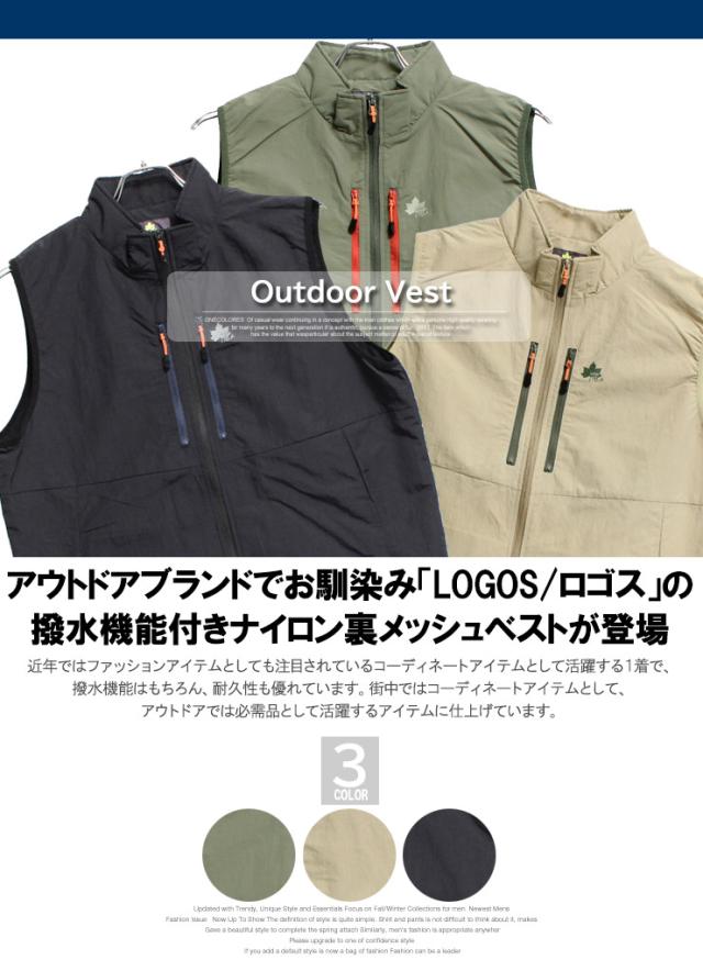 送料無料 LOGOS PARK(ロゴス パーク) ベスト メンズ 大きいサイズ 撥水加工 ナイロン 裏メッシュ アウトドア ジャケット 多機能ベスト 釣り フィッシングベスト ミリタリー 便利 サマー スタンド ブランド アウトドア キャンプ ワークマン プラス