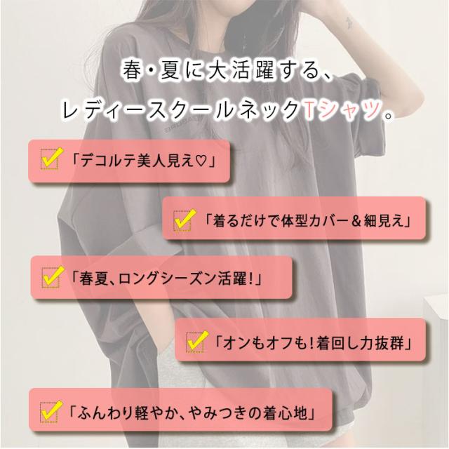 トップス Tシャツ レディース カットソー 半袖 5分袖 綿 コットン カジュアル シンプル 無地 クルーネック ゆったり 体型カバー 春 夏 秋 涼しい 涼感素材 ベーシック ファッション 着回し 大人 女性用 おしゃれ きれいめ プチプラ