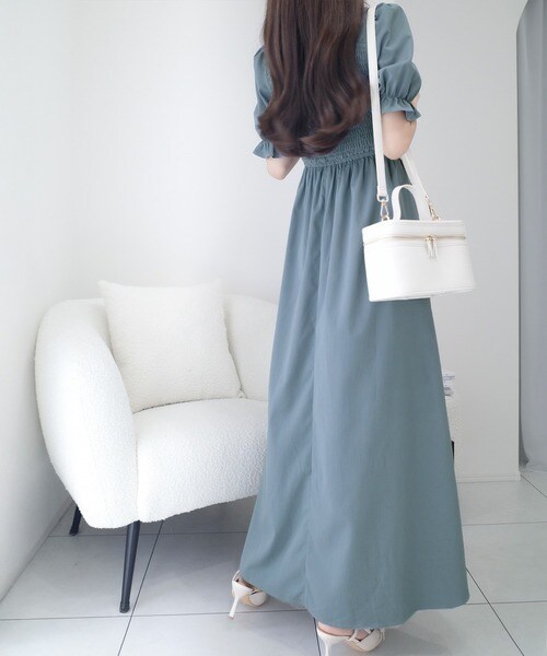首元はスクエアネックなのでデコルテも綺麗見えし、