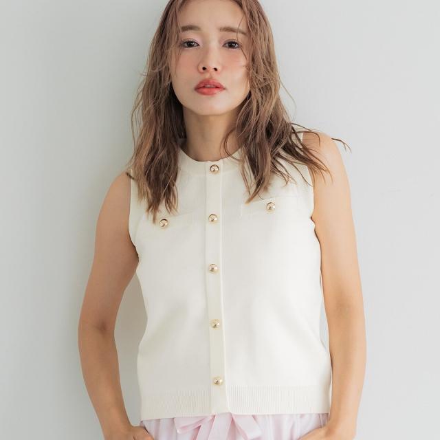 ゴールドボタンが上品なアクセントのノースリーブニット