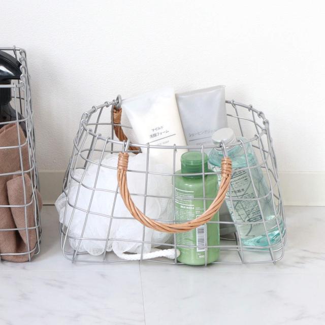 統一感のないものでもワイヤーバスケットに入れることでまとまりが生まれ、スタイリッシュな雰囲気を演出します。食品ストック、キッチン雑貨、コスメグッズ、タオル、お掃除用品の収納など、アイデア次第で様々なシーンで活躍します。