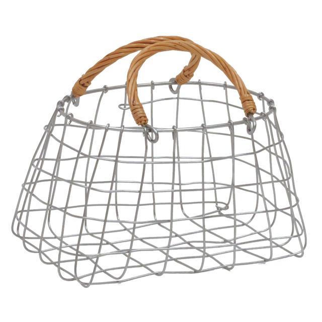 かご デュソール オーバルバッグ ワイヤーバスケット 持ち手付き ( バスケット カゴ アイアン 幅24×奥行16×高さ14cm 収納 収納かご 小物収納 見せる収納 ワイヤー おしゃれ ストッカー 柳 天然素材 )