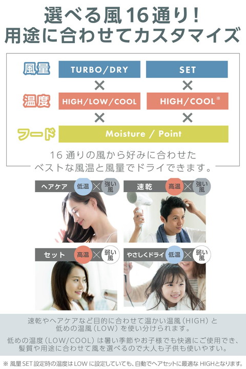 風も温度も好みでアレンジ。乾かし方が調整できる多機能ドライヤー