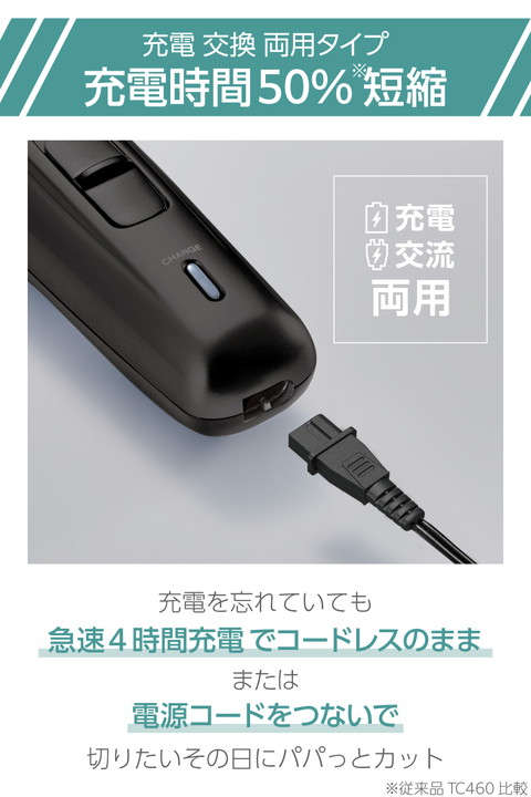 丸ごと水洗いOK&コードレスで持ち運びに便利なベーシックタイプ。、いつでもどこでもパパっとヘアカットできる。![]() ■すくった髪を逃がさず、狙った長さにカットできる新設計のショートコーム。 ■手元のダイヤルを回すだけで1mmずつ調節が可能。少しずつ短くカットできるので初心者でも安心です。握りやすさを考慮したボディ形状なので、強く握りこむ事なく使えます。 ■45°鋭角刃を使用することで、スムーズなカットが可能に。 ■耳まわり等の生え際もスキバサミのような自然な仕上がりに。ボリュームダウンもカンタンにできます。 ■お掃除レバーを立てることで、固定刃と可動刃の間もカンタンに掃除できます。 ■充電し忘れても短時間充電で待つ時間が50%※1短縮!コードレスだからお風呂タイム※2にお子様の髪もパパっとカットでき、切りたいその日にすっきり。※1 TC460 との比較※2 お風呂場など水気のある場所では、電源アダプターのご使用はおやめください。 ■抗菌剤配合で清潔に使えます。 ■AC100-240Vの地域で使用できます。 A2プラグ地域以外でご使用の際は、変換プラグをご用意ください。 ■丸刈りからショートスタイルまで使用可能です。 ![]() ■サイズ:高さ / 185mm 幅 / 48mm 奥行き / 43mm(本体のみ) ■質量:170g(本体のみ) ■消費電力:- ■付属品:ショートコーム / スキ刈りコーム / 電源アダプター / 掃除用ブラシ / TESCOMオイル ■電源:AC100-240V 50/60Hz(充電・交流式) ■充電時間:約4時間 ■水洗い:本体 / 刃水洗いOK ■海外使用:○ ■カラー:ブラック ■コード長:1.8m ■パーツ:オイル(500150)、ショートコーム(501460)、スキ刈りコーム(501461)、掃除用ブラシ(501455)、替刃(18087)、電源アダプター(500148) ■保証期間:1年間 |