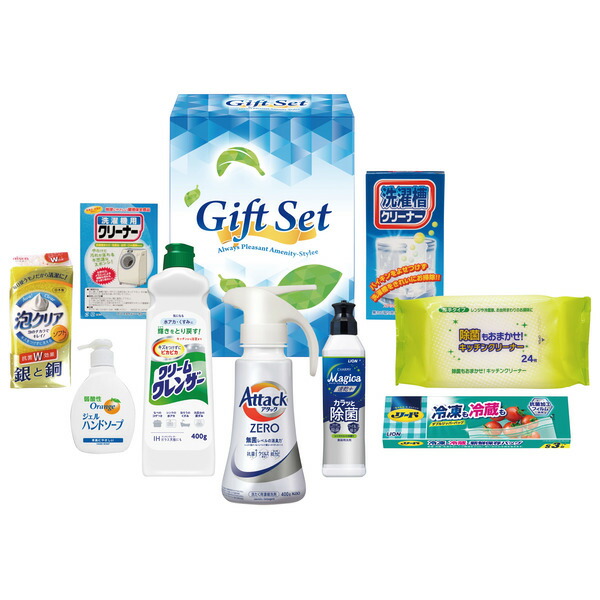 ●内容量:花王アタックゼロワンハンド400g、ライオンチャーミーマジカ速乾プラス220ml、ライオンリード冷凍も冷蔵も新鮮保存バッグS3枚(タイ製)、クリームクレンザー400g、洗濯槽クリーナー5錠、オレンジジェルハンドソープ200ml、泡クリアスポンジ、除菌キッチンクリーナー24枚、洗濯機用クリーナーM×各1