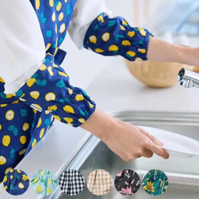 袖の汚れや濡れを防ぐアームカバーです。キッチンでの使用はもちろん、ガーデニング作業や掃除の際にも便利に活躍します。華やかな気分になる明るいデザインが特徴です。