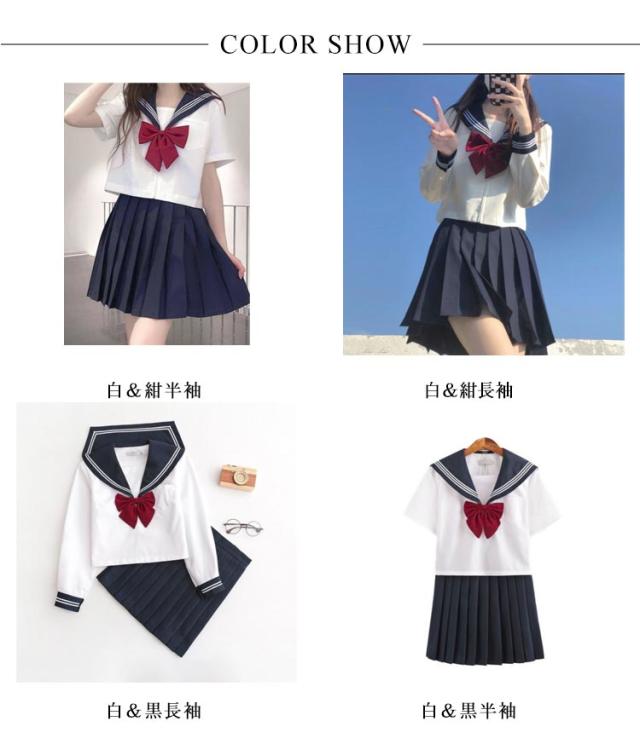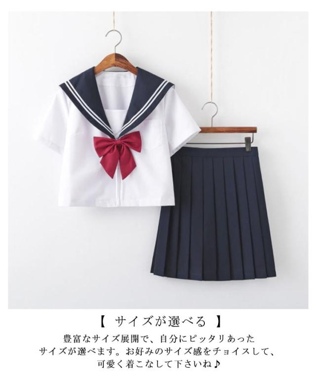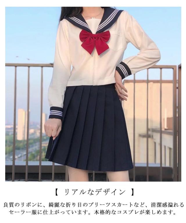 セーラー服 女子高生 制服 3点セット 長袖 半袖 シャツ スカート リボン 上下セット 学生服 JK制服 女子高校生 制服 コスプレ プリーツスカート ミニ丈 大人 レディース セーラー服 学園祭 文化祭 コスチューム 衣装 仮装 【送料無料】