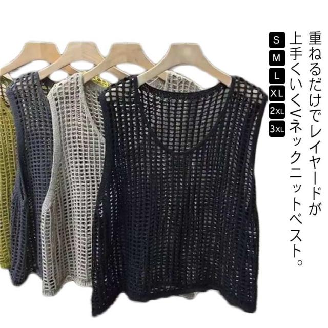 ニットベスト レディース ニット ベスト 透かし編み レディース サマー ベスト ニットベスト おしゃれ トップス 体型カバー ノースリーブ プルオーバー かぎ編み きれいめ カジュアル 春 夏 秋 レイヤード 重ね着 Vネック ニット 送料無料